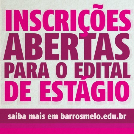 As Faculdades Integradas Barros Melo (Aeso) abrem processo seletivo para os alunos que buscam a oportunidade de estagiar nas áreas de: Administração, Artes Plásticas, Cinema e Audiovisual, Design Gráfico, Design de Moda, Direito, Fotografia, Jornalismo, Jogos Digitais, Logística, Produção Fonográfica, Publicidade e Propaganda e Rádio, TV e Internet. As inscrições acontecem no período de 13 a 17 de março e devem ser realizadas clicando aqui.